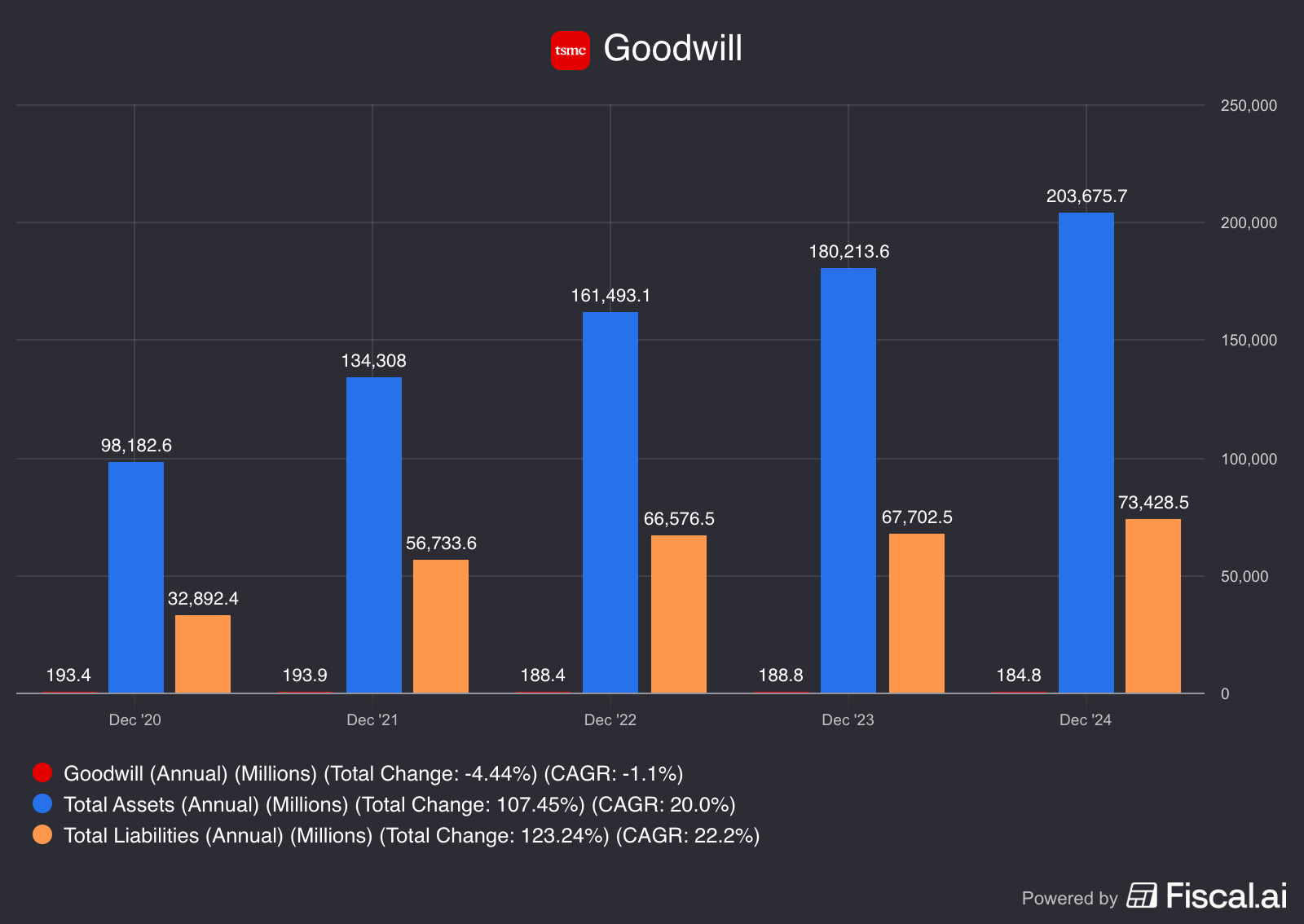 TSMC’s goodwill has been close to non existing for over five years, meaning that there is no impact from M&A’s on the balance sheet.