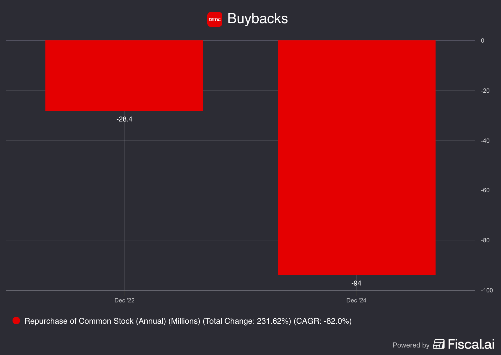 It appears that TSMC has bought back shares ever since 2022. Last year, they bought back around $94M.